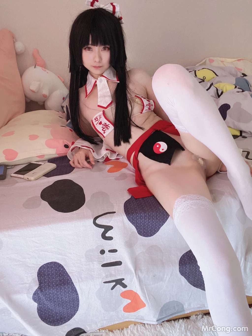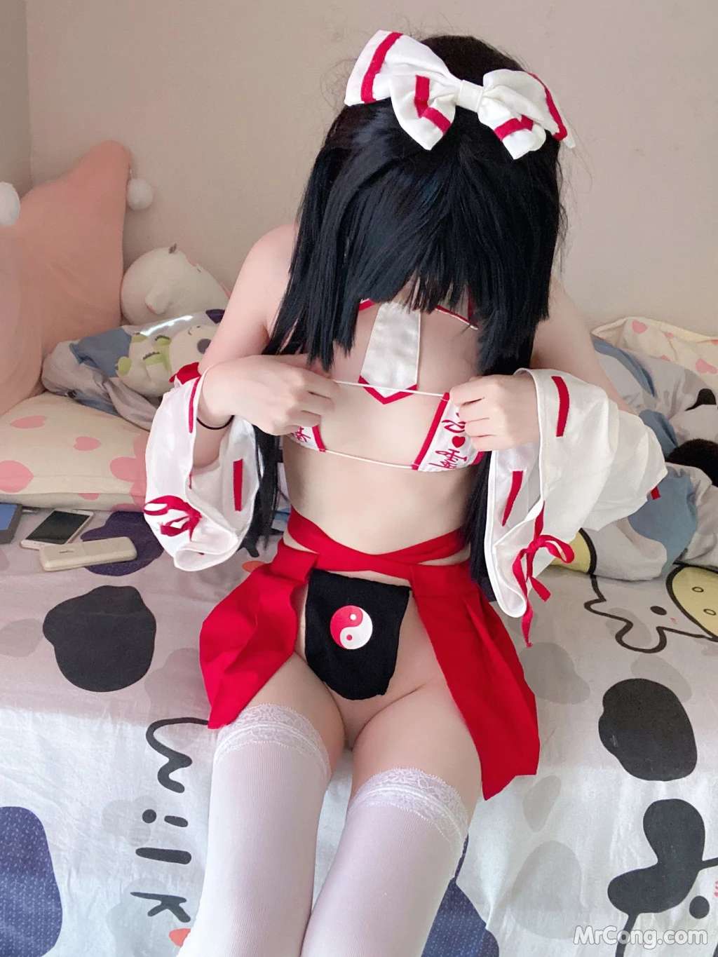 Coser@习呆呆: 眼帯ブラ巫女紧缚 (55 photos )