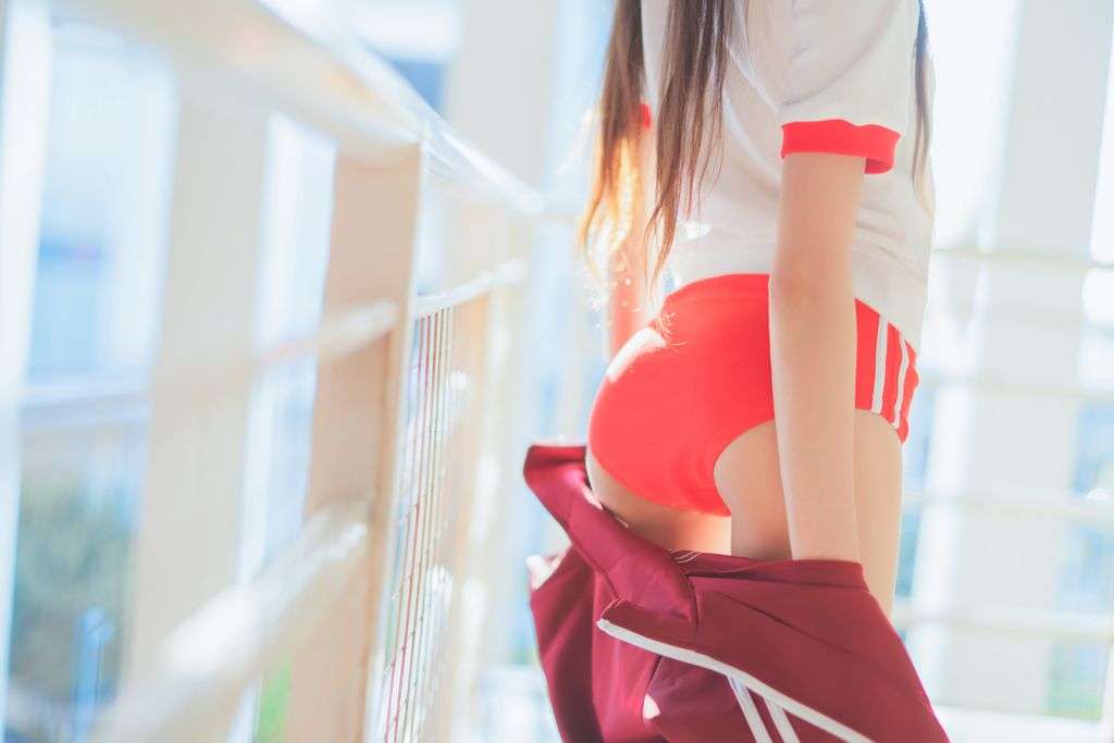 Coser @ 桜 桃 喵 Vol.091: 红色 体操服 (44 photos)