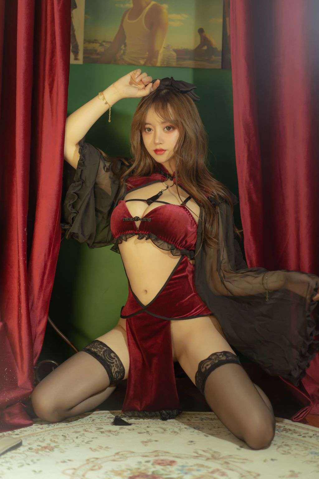 Coser @ 过期 米线 线 喵: 红 丝绒 旗袍 (53 photos)